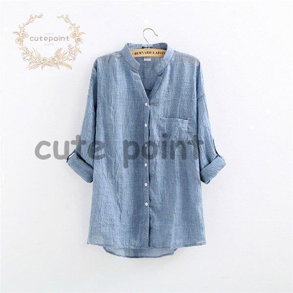 ブラウス シャツ レディース 夏 トップス 前開き 麻綿混紡 シンプル 無地 着...