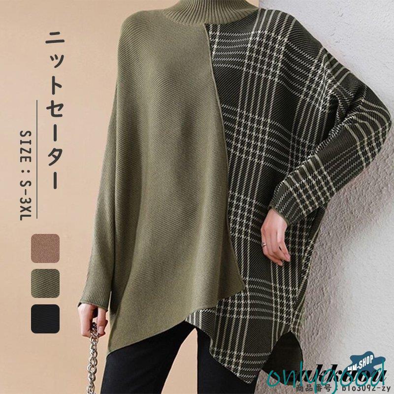 ハイネックニット レディース 切り替え リブニット ハイネック ニットトップス ニット にっと 秋 冬 セーター チェック柄 ニットセーター ブラウス 長袖 カットソー タートルネック 無地 ベーシック 体型カバー ゆったり 秋冬 シンプル カジュアル風 柔らかい【商品情報】■サイズ(cm)表示サイズ:S/M/L/XL/2XL/3XL総 丈...
