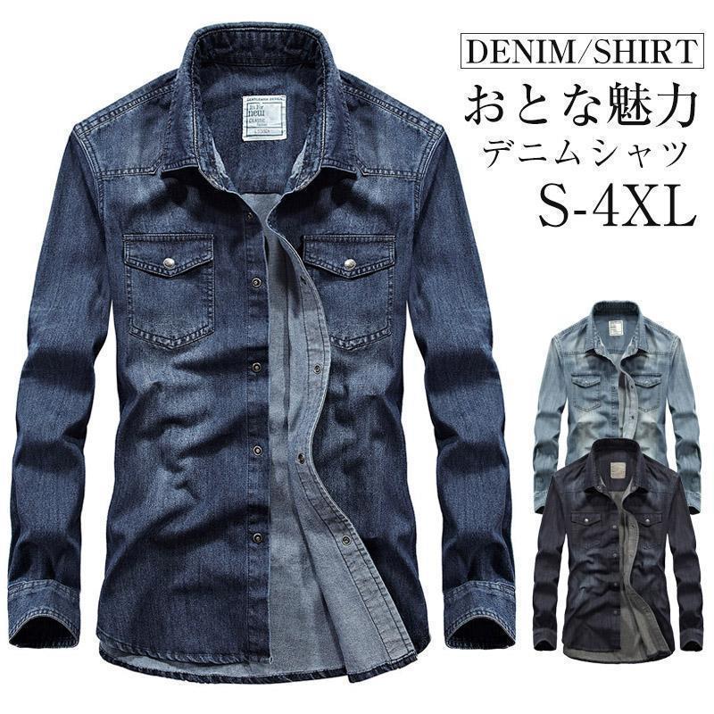 デニムシャツ メンズ 長袖 おしゃれ シャツ 胸ポケット コットン 春服 秋 コ...