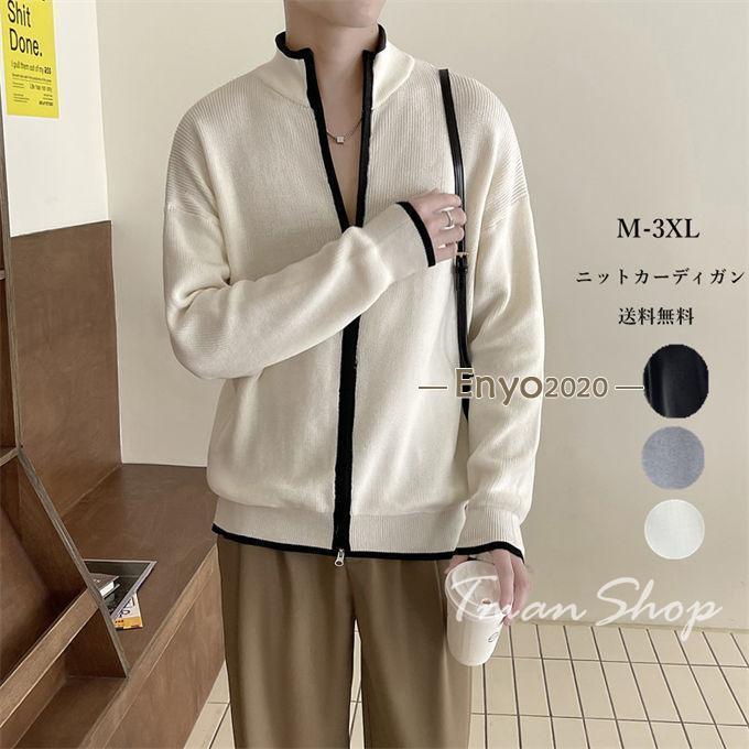 ニットカーディガン メンズ ジップアップ トップス カジュアル 羽織 アウタ...