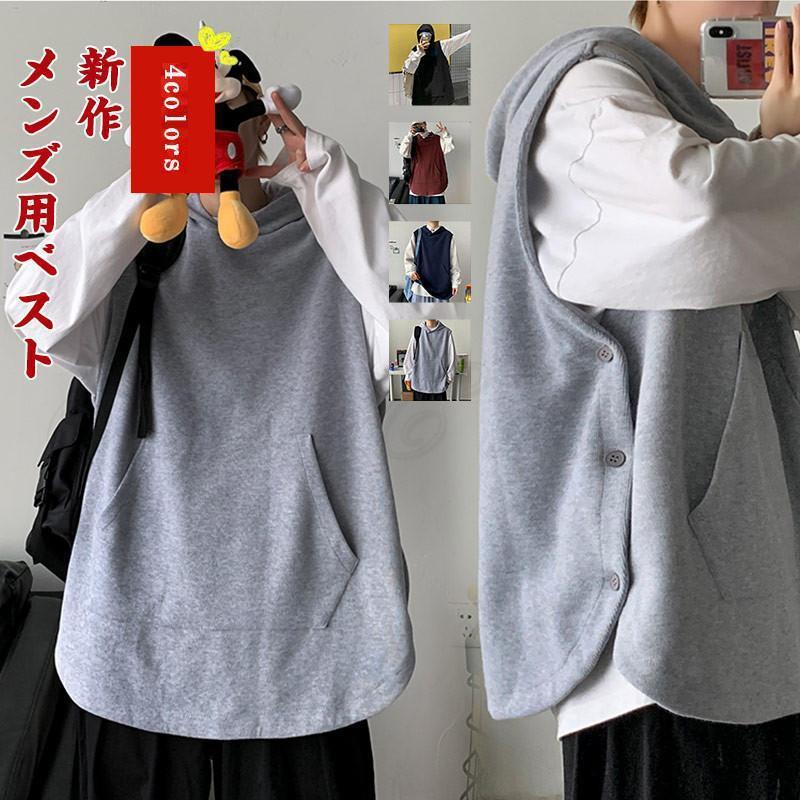 ベスト メンズ アウター 無地 フード付き 前開き トップス カジュアル ポケ...