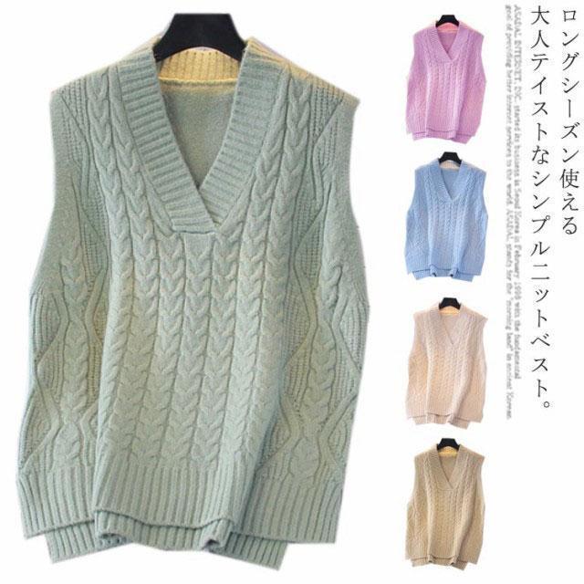 ニットベスト レディース ニット セーター Vネック スリット入り ノースリー...