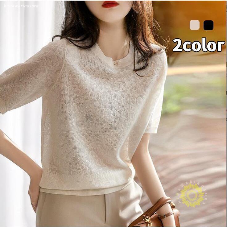 ニットTシャツ レディース 春夏 半袖ニットソー レションニットトップス薄手...