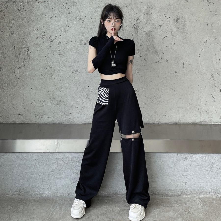 ボトムス ストリート系 かっこいい HIPHOP パンツ ガールズ 黒 カーゴパンツ...