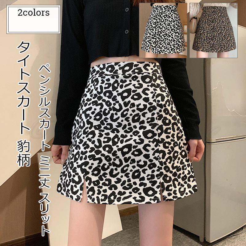タイトスカート レディース ペンシルスカート 豹柄 ミニ丈 スリット ハイウ...