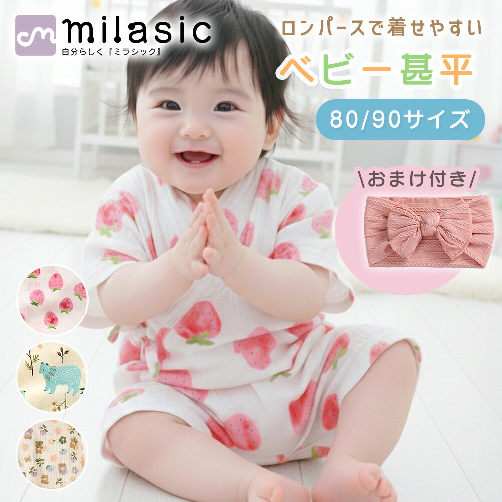 【MILASIC公式】ベビー 甚平 おまけ付き 女の子 男の子 赤ちゃん 80 90 サイ...