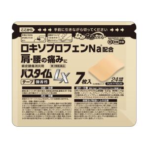 商品名 パスタイムLX 内容量 7枚 成分・分量 (膏体100g中[1枚あたり(7cm×10cm)膏体量1g]) ロキソプロフェンナトリウム水和物 5.67g(無水物として5g) 添加物:l -メントール、スチレン・イソプレン・スチレンブロック共重合体、ポリイソブチレン、脂環族飽和炭化水素樹脂、 流動パラフィン、ジブチルヒドロ...