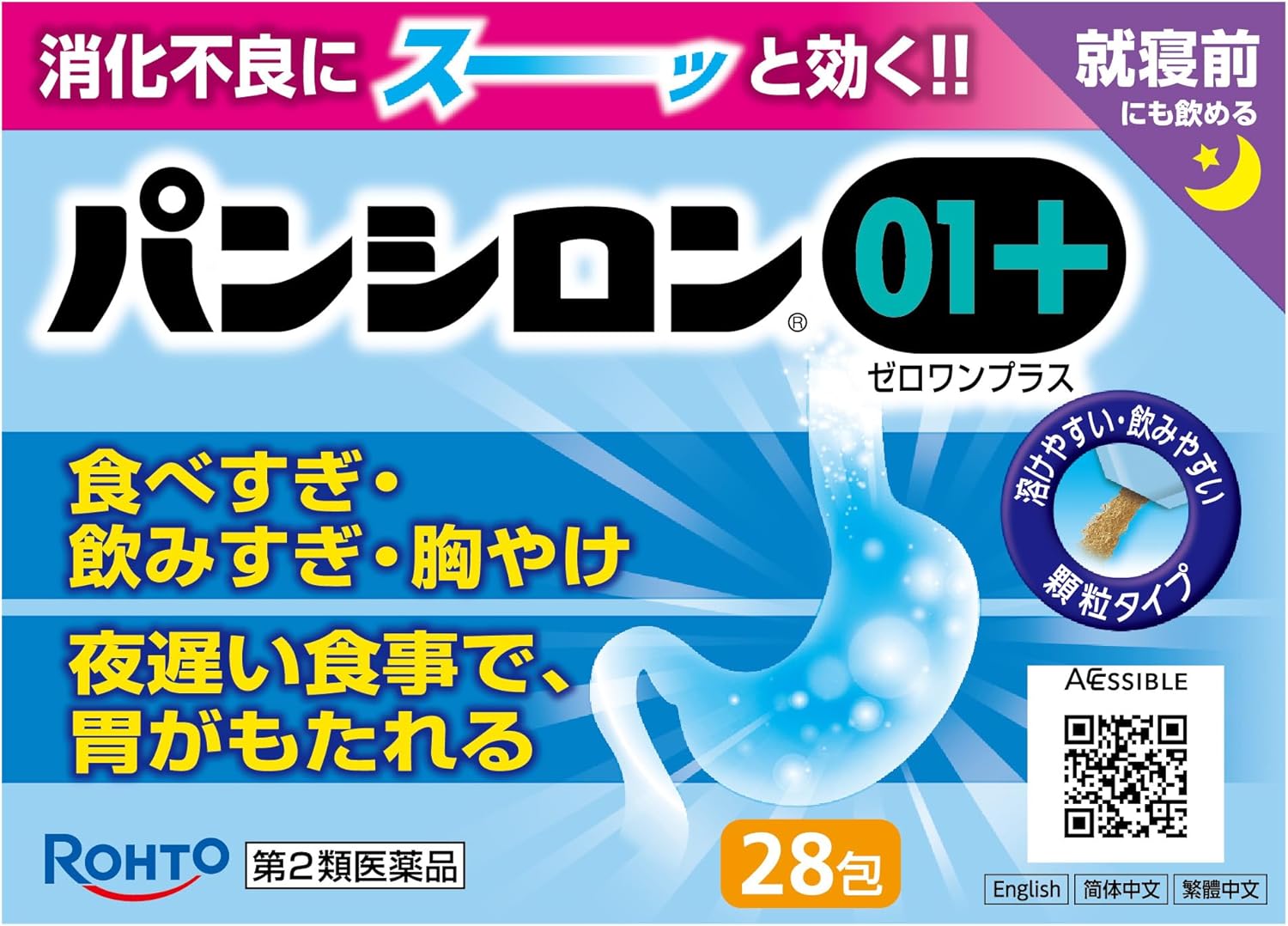 製品の特徴 すっきり服用感 消化不良にスーッと効く!! 就寝前にも飲める 食べすぎ・飲みすぎ・胸やけ 夜遅い食事で,胃がもたれる お休み前にもパンシロン! 13種類の有効成分を配合した複合胃腸薬!! 1.胃を元気にする:ニンジン末,ケイヒ末 2.消化を助ける:ビオチアスターゼ2000,プロザイム6,リパーゼAP6,3....