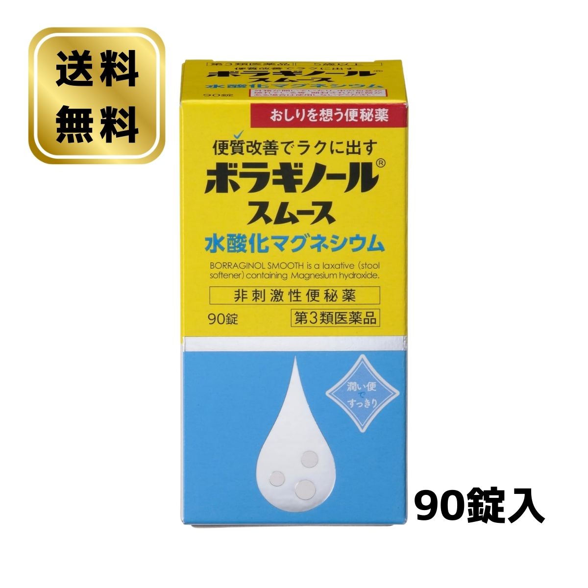 【第3類医薬品】 ボラギノールスムース便秘薬 90錠医薬品区分一般用医薬品【第3類医薬品】薬効分類便秘薬商品説明●水酸化マグネシウムが便中の水分量を増やし、便をやわらかくします。 ●便の量を増やすことで大腸をやさしく刺激し、肛門に負担をかけない排便を促します。 ●腸を直接刺激せず、くせになりにくい非刺激性の...