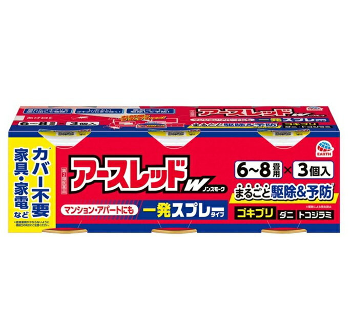 商品名 アース製薬 アースレッドW ノンスモーク 6〜8畳用 内容量 100mlx3個パック 商品説明 ●薬剤がお部屋のすみずみまで拡散し、お部屋のゴキブリ、ダニ、トコジラミ(ナンキンムシ 南京虫)などの害虫をまとめて駆除・退治する殺虫剤。総合害虫駆除剤です。 【まるごと駆除&予防(駆除による発生防止)】 ●隠れた...