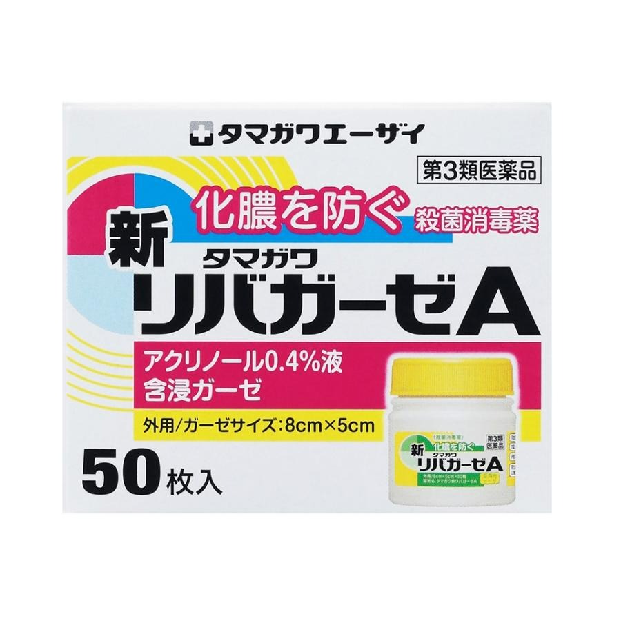 『新リバガーゼA 50枚入』切り傷・すり傷・化膿性創傷に|アクリノール殺菌...