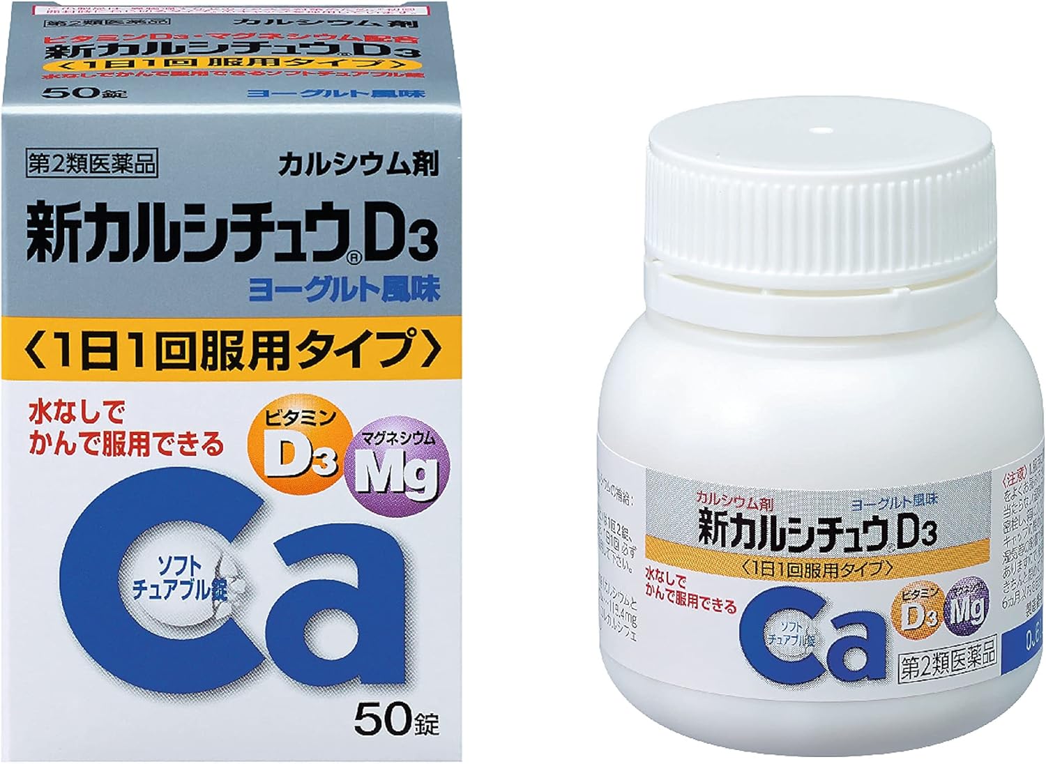 製品の特徴 1.1日1回、2錠(15歳以上)で、カルシウム610mgが摂れます。 2.カルシウムの吸収を促進するビタミンD3、さらにマグネシウムを配合しています。 3.服用しやすい、かみくだけるソフトチュアブル錠。 水なしでそのまま服用できます。 4.さわやかなヨーグルト風味です。 使用上の注意 ■相談すること 1.次の...