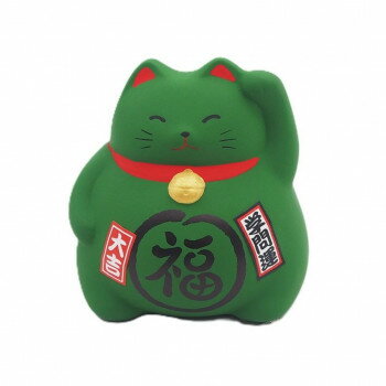 M7889 風水貯金箱 まる福招き猫 緑 萬古焼置物【メーカー直送:代金引換不可...