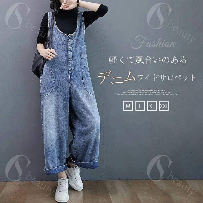 デニム サロペット パンツ オールインワン レディース ロング丈 サロペット...
