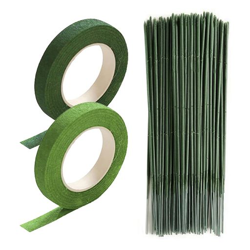 【サイズ】テープ:幅約12mm、長さ約30メートル。地巻ワイヤー:長さ25cm、太さ2mm(鉄線太さ1mm) 【材質】テープ:和紙。地巻ワイヤー:鉄、プラスティック。 【セット内容】地巻ワイヤー*50、フローラテープ*2(ライトグリーン*1、ダークグリーン*1) 使用前にテープを少し伸ばすと粘着力が増します。 花や茎の花束、造花、ギ...