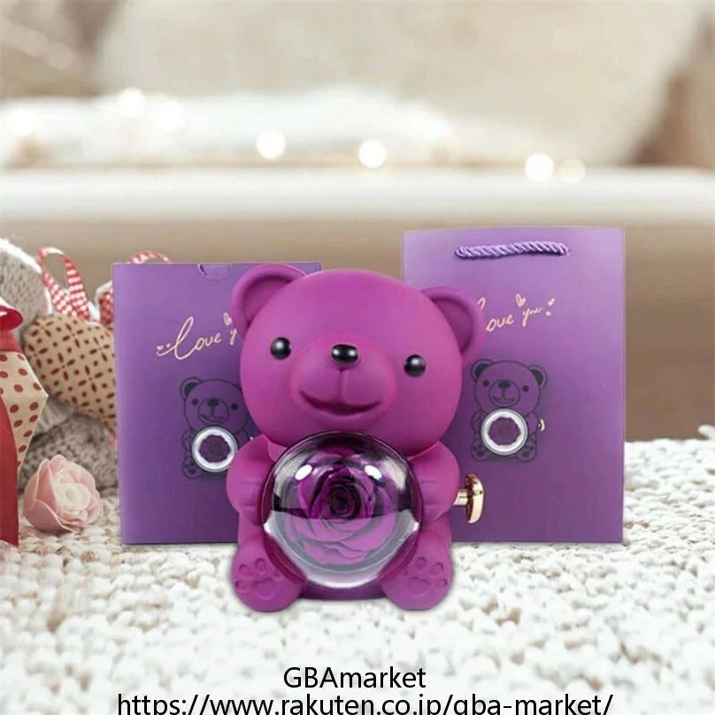 カラーローズ 置物 枯れないバラの花束 ジュエリーボックス クマのネックレ...