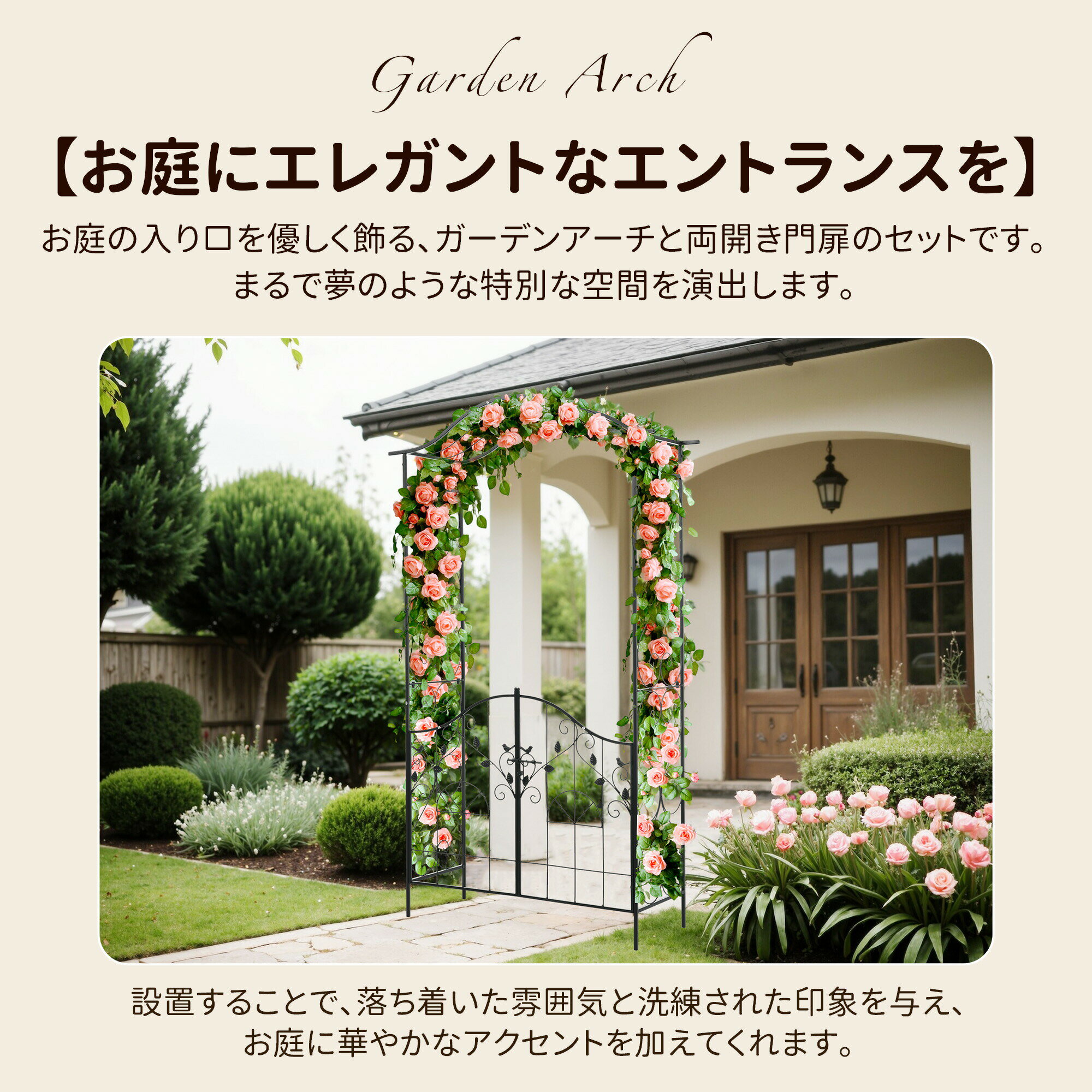 【即納】ガーデンアーチ&ゲートセット 両開き門扉 ガーデンアーチ ローズア...