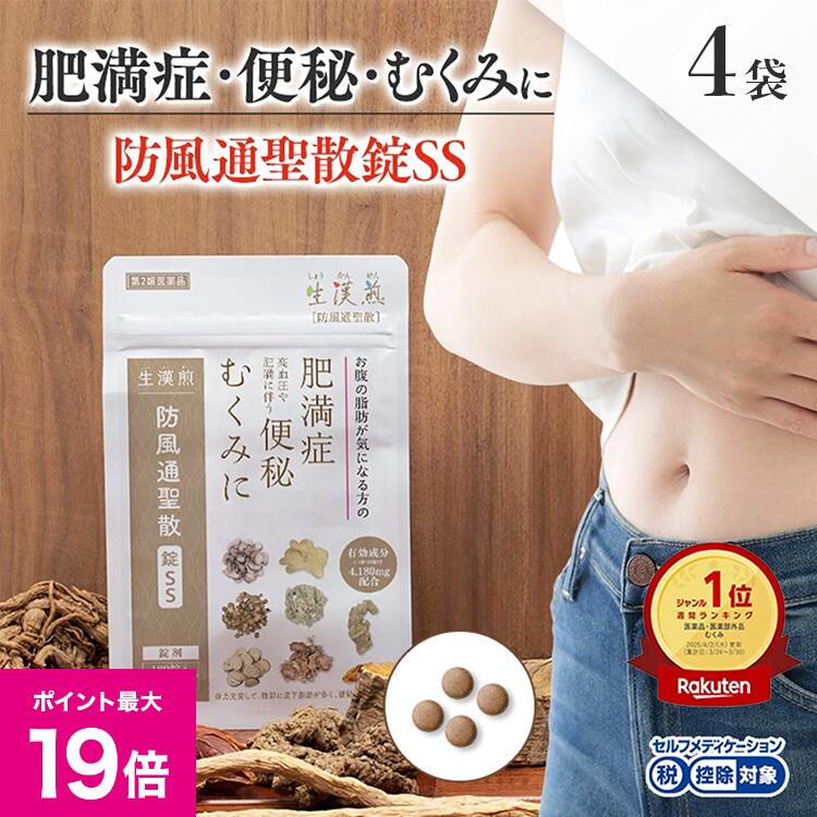 ■販売名 防風通聖散錠SS(4袋セット)※2か月分 ■効果・効能 体力充実して、腹部に皮下脂肪が多く、便秘がちなものの次の諸症:高血圧や肥満に伴う動悸・肩こり・のぼせ・むくみ・便秘、蓄膿症〈副鼻腔炎〉、湿疹・皮膚炎、ふきでもの(にきび)、肥満症 ■用法・用量 次の量を1日3回朝昼夕、食前又は食間にそのまま水か白...