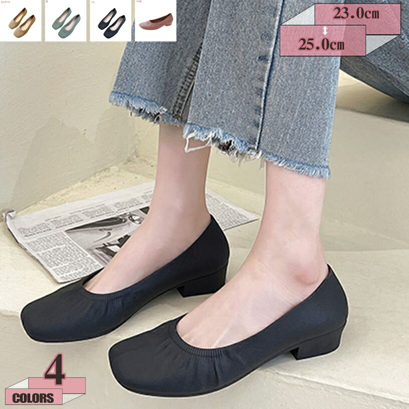 [Luzean]レディースパンプススクエアトゥヒール4cm太めヒール柔らか痛くない...