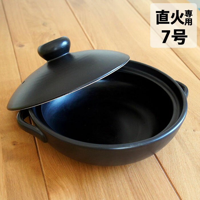 万古焼 ラウンド 黒 7号土鍋直火/業務用/ガス対応/日本製/ばんこ焼