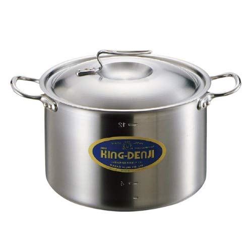 ・外寸 :φ348mm 底径:305mm・内寸 :φ330×210mm・重量:5.3kg・材質:SUS445M2(モリブデン鋼2%含有)・容量:17.5L●IH専用鍋のハイクラスモデル・ニューキングデンジの熱への変換率は95%以上、熱伝導性に優れた高品質ステンレスを使用しています。しかも充分な厚みのある一枚ステンレスの為、しっかり保温、熱を逃しません。...