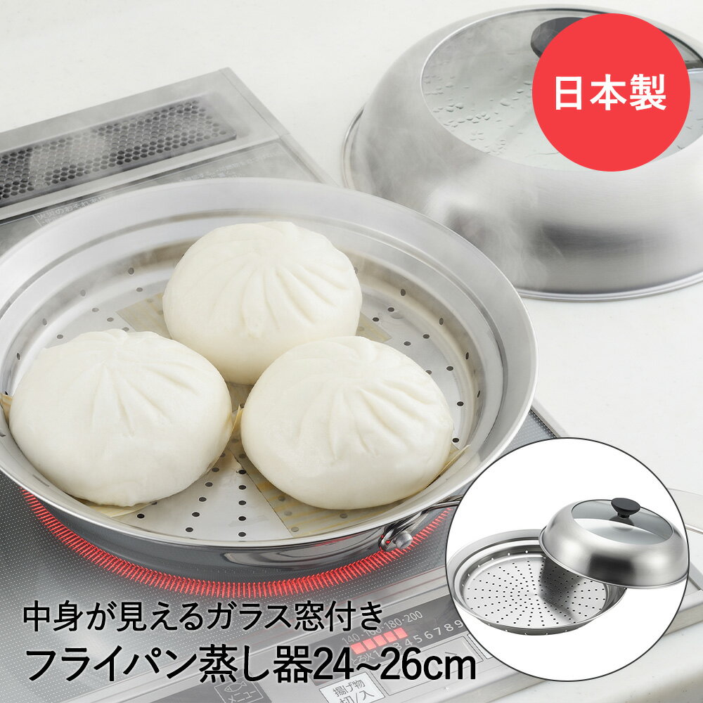 蒸し器 ステンレス フライパン 24 - 26cm 用 ガラス窓付 ふた YJ3212 ヨシカ...