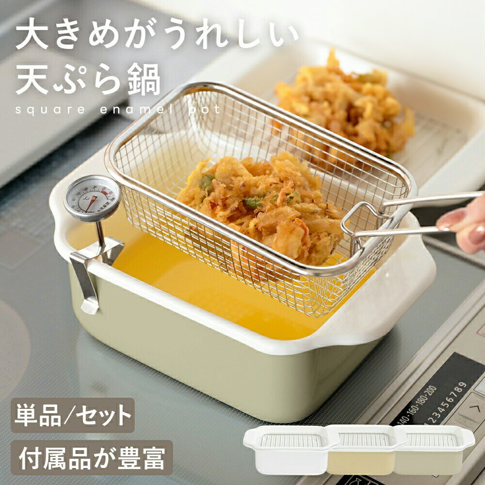 【クーポン利用で30%OFF】ホーロー角型天ぷら鍋 バット 油きり網 温度計 簡...