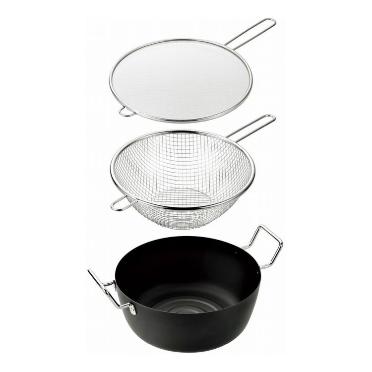 よこやま 天ぷら鍋22cm&手付きフライヤー22cm&フライヤー油はねガード24cm E...