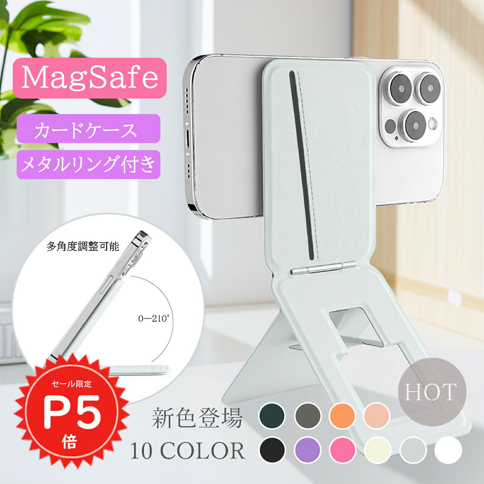 商品情報 しっかり固定 MagSafe対応でワンタッチ装着、安定したホールド力を実現。縦置き・横置きどちらにも対応し、動画視聴やオンライン会議、ライブ配信など幅広いシーンで活躍します。 8in1のMagSafe スタンド ▼カードケース:1〜2枚収納可能で、スマートに持ち歩ける。 ▼ 多角度スタンド:自由な角度調整で快適な...
