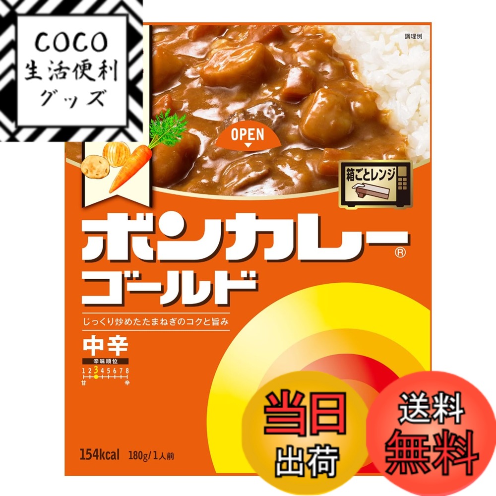 商品情報商品の説明ボンカレーゴールドは、レトルトカレーの永遠のスタンダード。 国産じゃがいも・たまねぎ・にんじん使用。目指したのは、手作りのおいしさ。味の基本は、60分ていねいに炒めた たまねぎ。ボンカレーならではの甘みやコクをぜひお楽しみください。 「ボンカレーゴールド 【中辛】」 あめ色になるまで炒...