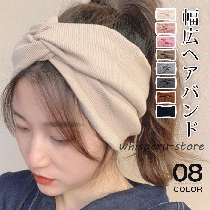 ヘアバンド リブ ターバン 幅広 ヘアターバン ヘアアクセサリー クロスヘア...