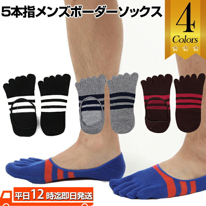 5本指メンズ2トーンボーダーカバーソックス | メンズソックス メンズボーダ...