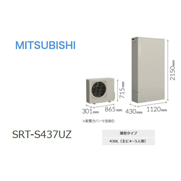 【SRT-S437UZ】三菱電機エコキュートSシリーズ リモコン・脚部カバー別 エコキュート フルオート 430L 薄型 ハイパワー給湯