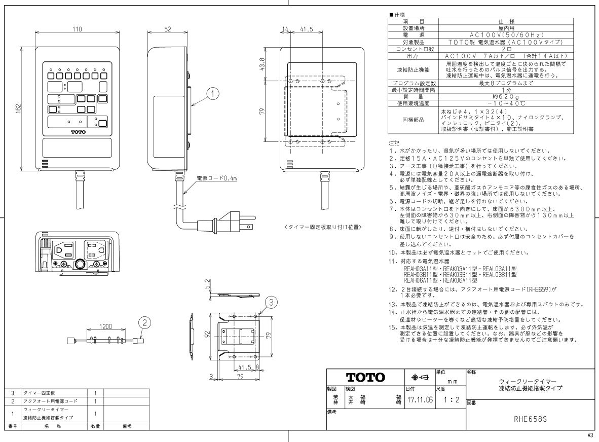 RHE658S ウィークリータイマー(凍結防止) TOTO 純正品 正規品保証
