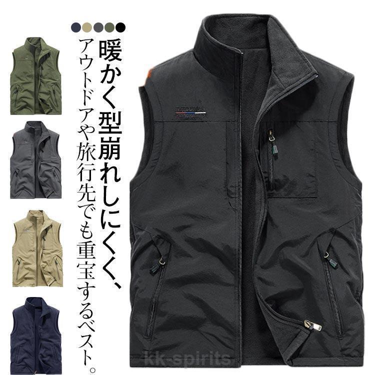 ネイビー ジップアップ ボンディング フルジップ フリースベスト 無地 冬 グ...