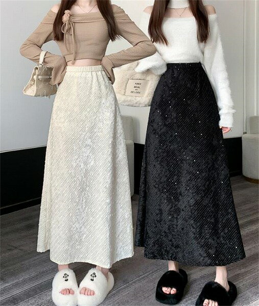 Newタイプついに入荷 通勤する スパンコール スカート 春 伸縮性のあるウエ...