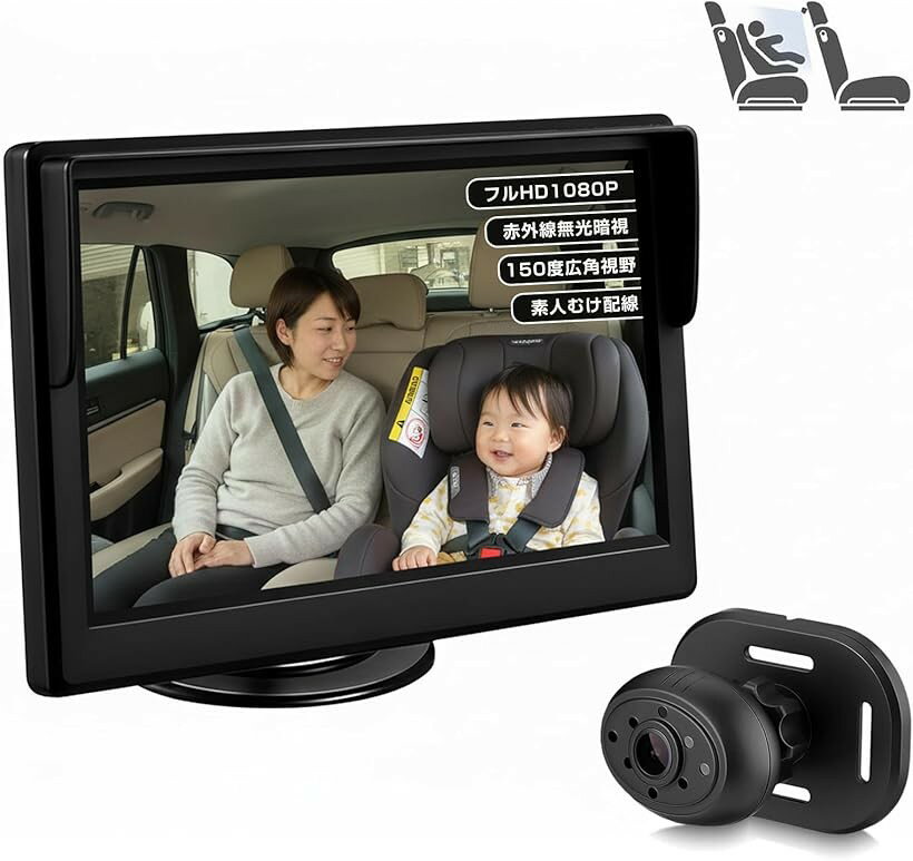 ベビーモニター 車用 車載 赤ちゃん ベビーミラー カメラ 車 見守りモニター...