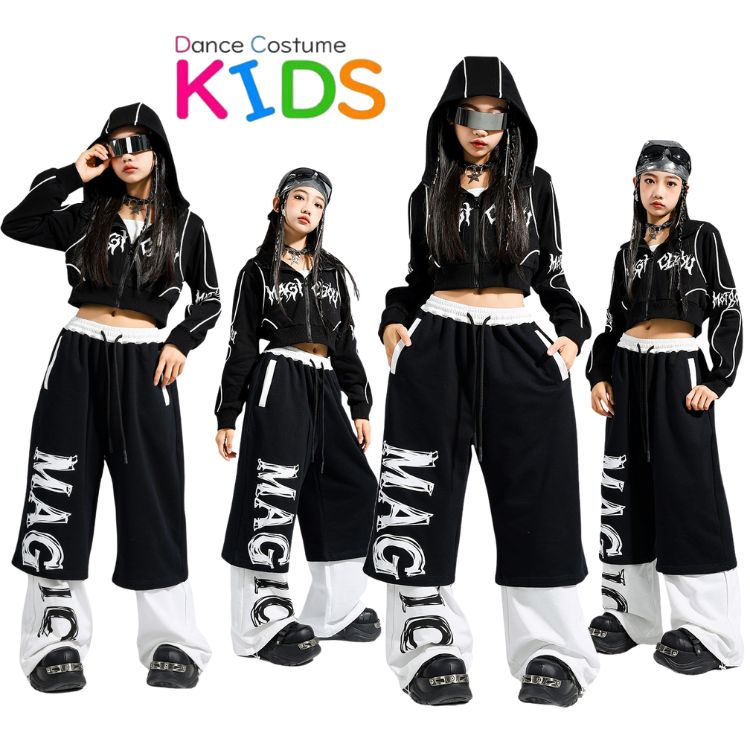 キッズダンス衣装 HIPHOP衣装 ブラック ロングパンツ パンツ トップス 英字...