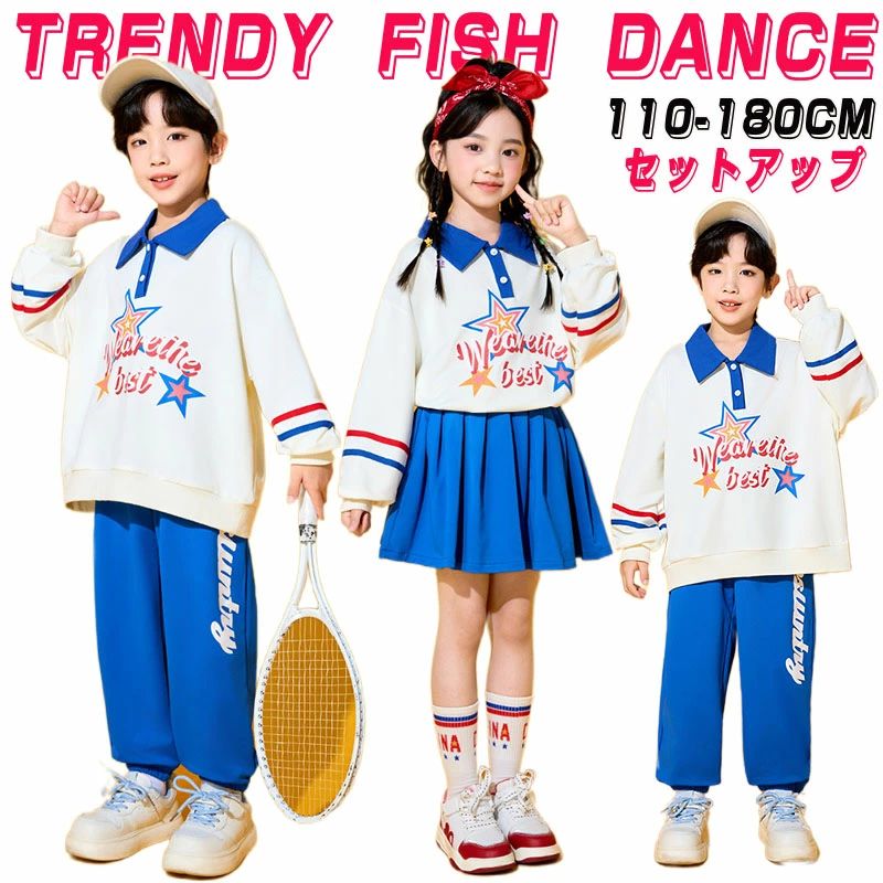 ★商品詳細 白 青 ポロシャツ 星柄 ガールズ ボーイズ キッズ ダンス衣装 ヒップホップ ジャズ トップス 長袖 長ズボン スカート スウェット スポーツ 舞台 演出服 子供 ダンスウェア 男の子 女の子 お揃い ステージ衣装 応援団 HIPHOP 練習着 発表会 応援団 人気 おしゃれ カジュアル 商品内容:セット 素材:ポリエステ...