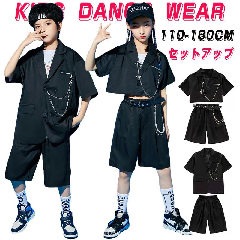 ブラック ダンス衣装 キッズ 男の子 女の子 セットアップ 半袖 スーツ 薄手 ...