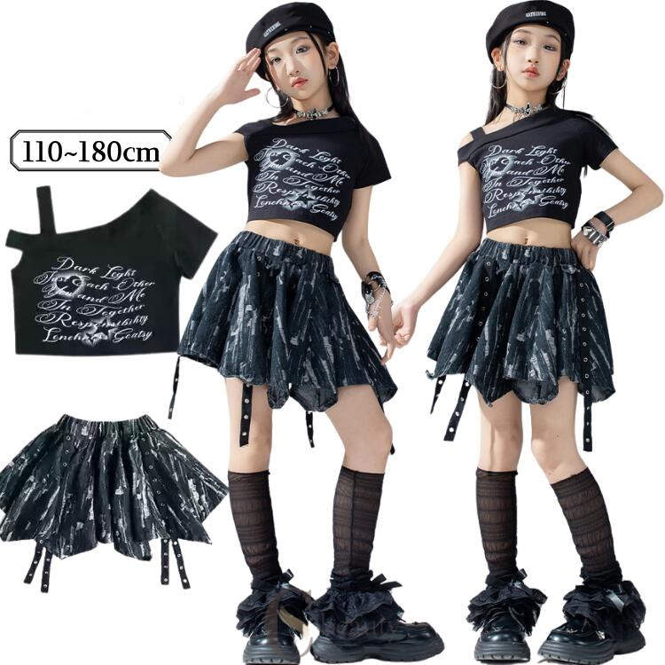 k-pop衣装 キッズ ダンス衣装 女の子 ヒップホップ チアガールズ ダンス 黒 ...