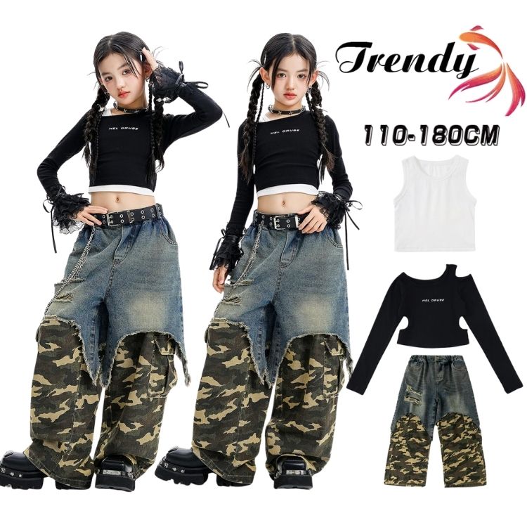 人気検索キーワード:黒 ブラック トップス インナー パンツ 迷彩柄 デニムパンツ へそ出し パッチワーク 長袖 キッズ ダンス セットアップ 韓国 k-pop ヒップホップ 女の子 ギャル アイドル かっこいい カジュアル 子供服 ステージ衣装 jazz ジャズダンス 団体服 練習着 演出服 原宿系 110-180cm 商品内容:キッズダン...