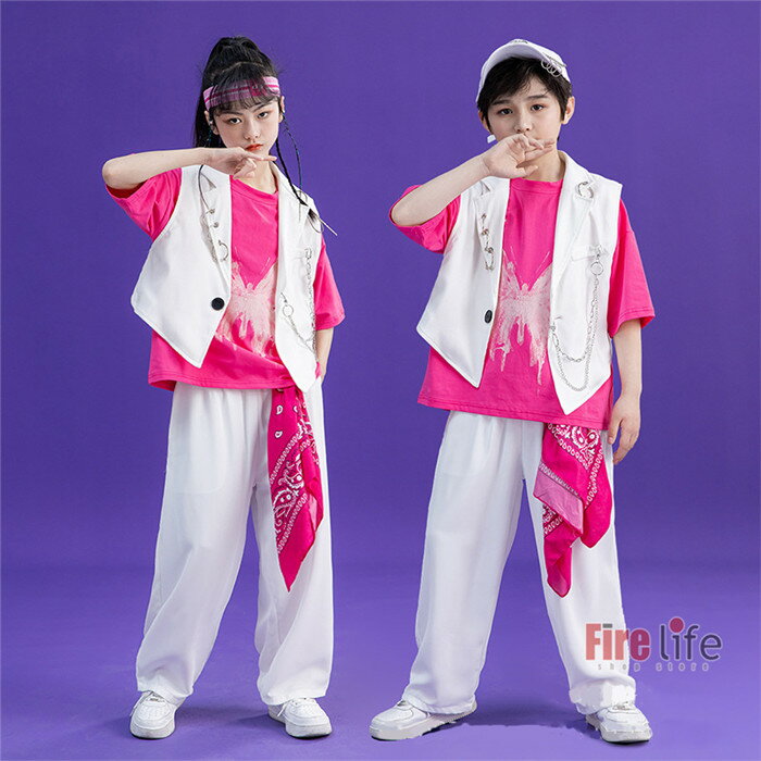 キッズダンス衣装 半袖tシャツ ベスト ロングパンツ ヒップホップ 男の子 女...