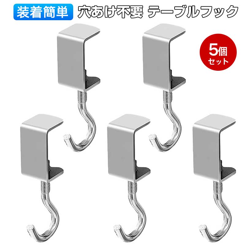 【5個セット】テーブルフック 調整可能 シルバー 強力 収納フック 装着簡単 ...