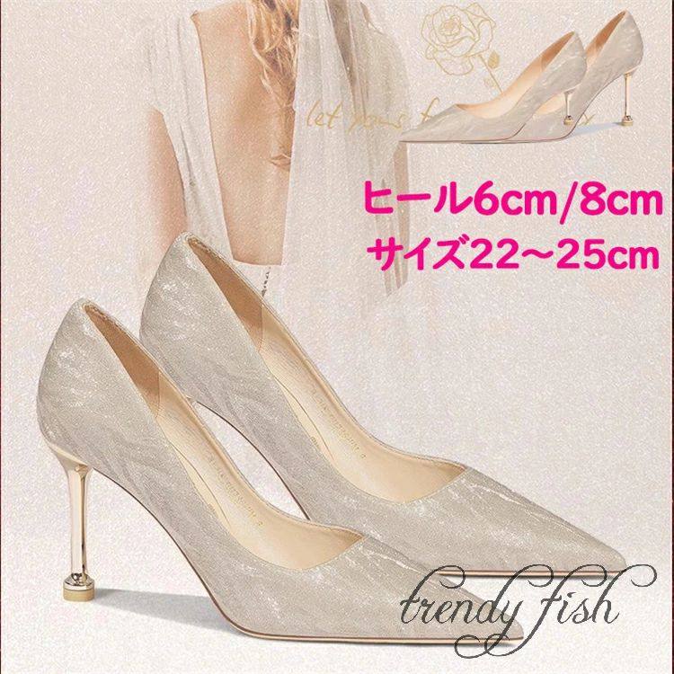 パンプス グリッター ウェディングシューズ ブライダル シューズ ヒール 6cm...