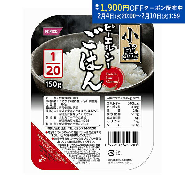 ピーエルシーごはん小盛 1/20 【150g×20パック入】 低たんぱく質 低たんぱ...