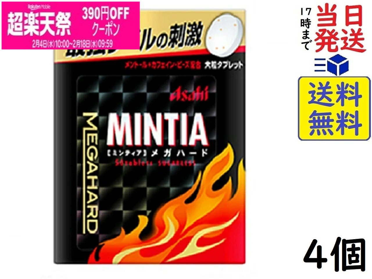 アサヒグループ食品 ミンティア メガハード 50粒 ×4個賞味期限2026/11 【送料無料】【当日発送】【ポスト投函】 ミンティア メガハード 50粒ミンティア史上最強レベルの刺激!ミンティアレギュラードライハードの7倍サイズ(1粒当り)の大粒ミントタブレット。メントールとカフェイン・ビーズ配合。原材料: 甘味料(ソル...