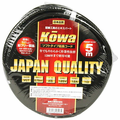 【メール便での発送商品】延長コード12A・5m1口 FW097-5 クロ KOWA(コーワ) ...