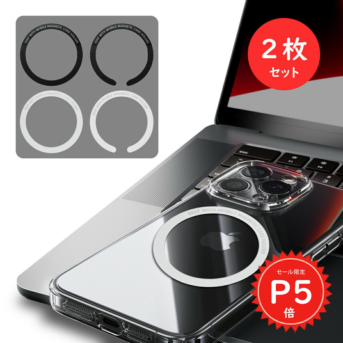 【超ポイント祭限定P5倍】 【2枚入り】 MagSafe対応 メタルリング MagSafe ...