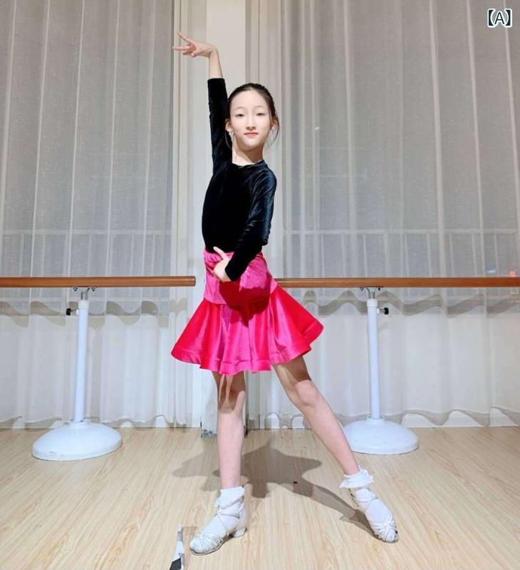 ラテンダンスウェア 女の子 キッズ ジュニア 秋冬 ベロア 長袖 練習着 レッ...